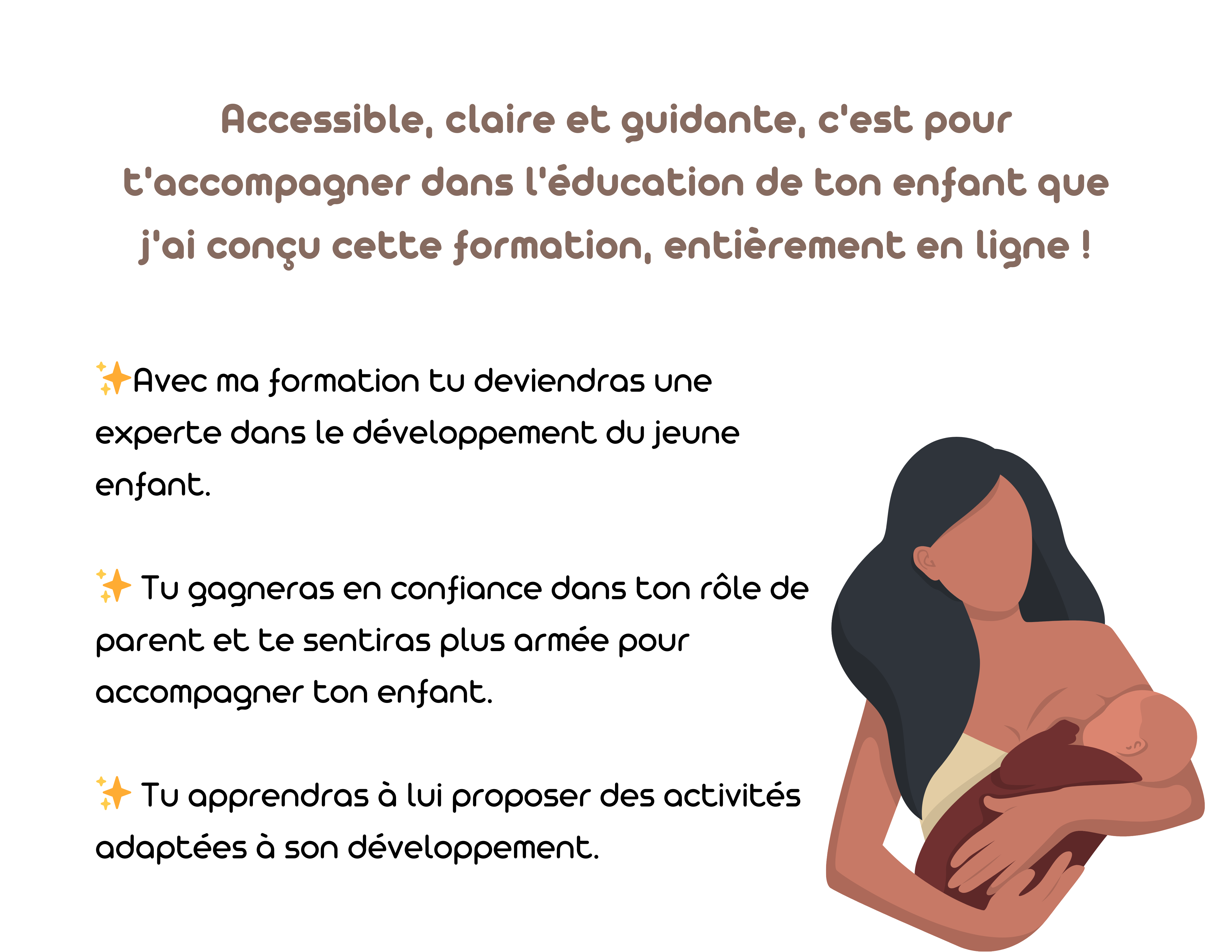 Cette formation est principalement faite pour les parents ou futurs parents afin de les accompagner dans l'éducation de leurs enfants, mais aussi pour les assistantes maternelles et les professionnelles de la petite enfance qui travaillent auprès des tout-petits.