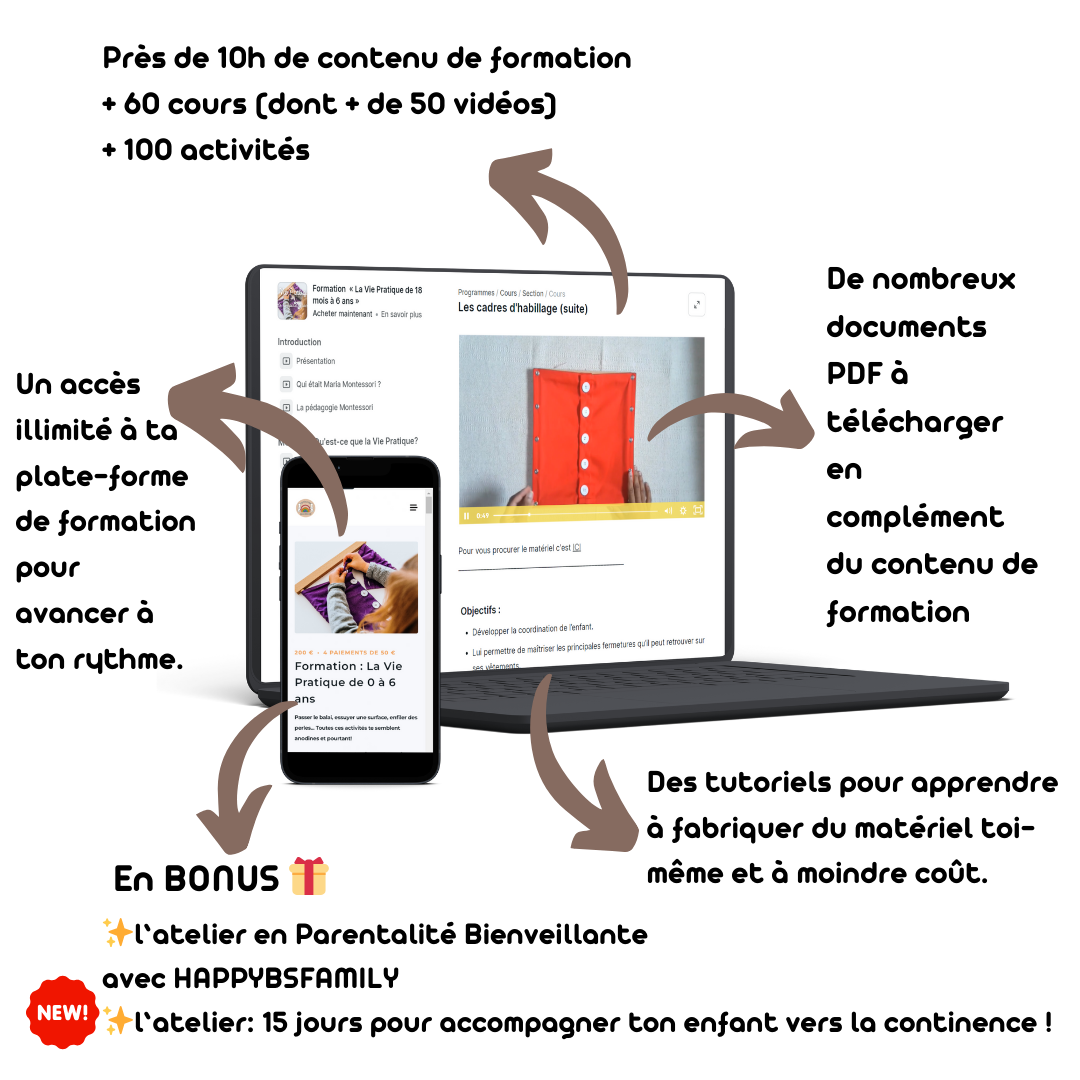 Dans ce module, tu découvriras en profondeur ce qu'est REELLEMENT la Vie Pratique Montessori, tous les bénéfices que tu pourras apporter à ton enfant et en quoi ces activités représentent un réel tremplin pour ton enfant.